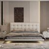 Floating Vintage Double Bed Luxury Queen King Size Solid Wood Platform Bed Frame Modern Bedroom Furniture Upholstered Bed Smart