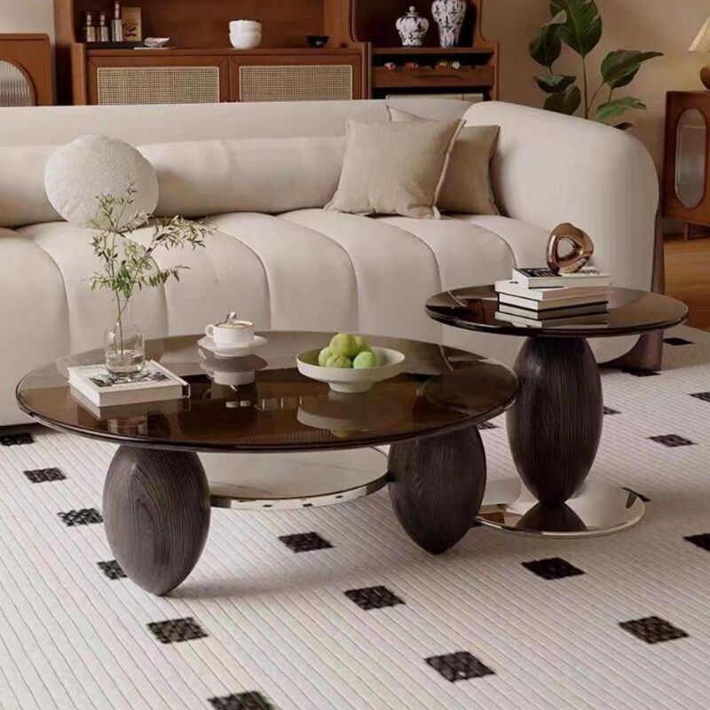 Glass Minimalist Italian Black Art Creative Wax Wood Round Coffee Table