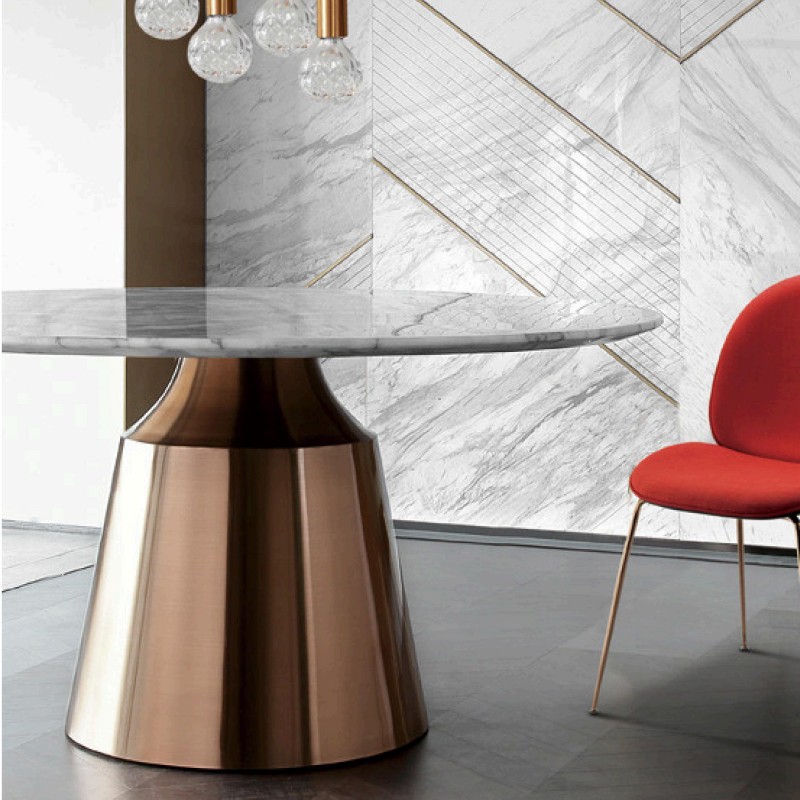 High-end Modern New Design Leg Dining Table Villa Round Italian Marble Swivel Table Top Luxury Dining Table