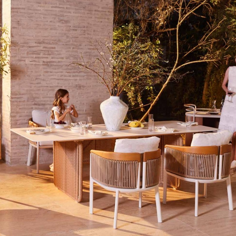 High-end outdoor dining tables, rattan woven chairs, sunrooms, hotel gardens, and outdoor furniture
