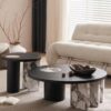 Hot Sales Living Room Furniture White and Black Gold and Black Stainless Steel Frame Round Coffee Table Set