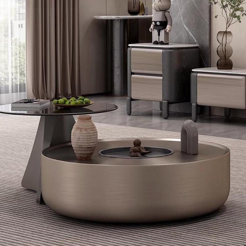 Italian Luxury Round Combination Coffee Table Nordic Living Room Tea Table Small Apartment Glass Coffee Table