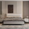 King Size Heavy Duty Bed Frame Genuine Leather Headboard Modern Style Upholstered Platform Bed Strong Slats Storage for Bedroom