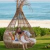 Leisure outdoor sofa, wicker woven coffee table, hotel garden outdoor furniture