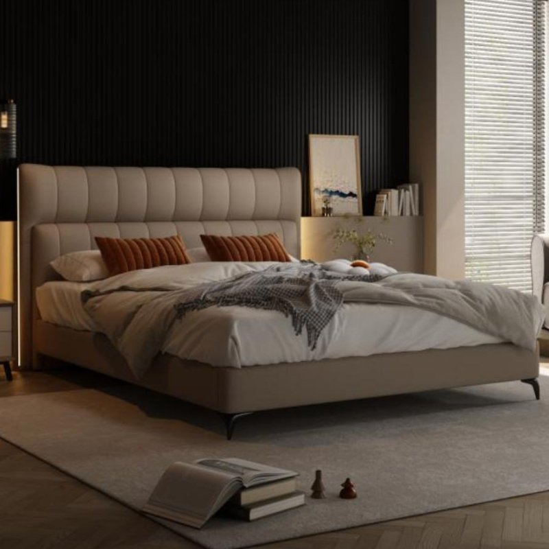 Luxury Latest Design Bed Frame Leather Design Bedroom Bed with Light Bedroom Furniture Set King Queen Size