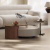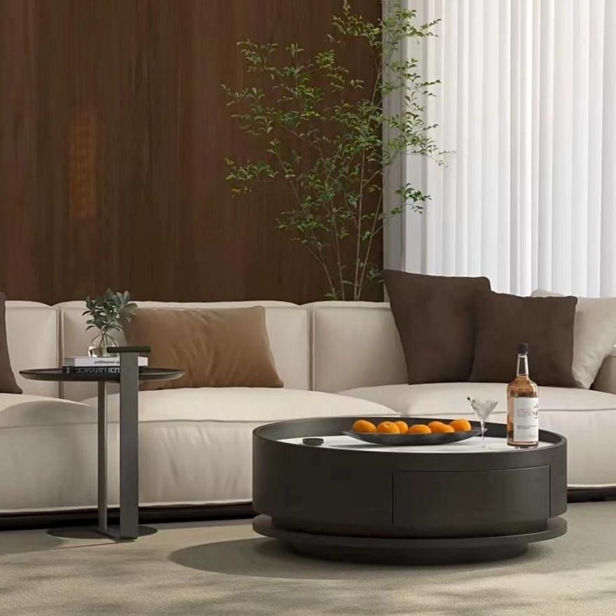 Minimalist Round Coffee Table Living Room Home Designer Creative Small Apartment Rock Panel Smoked Wood Storage Coffee Table