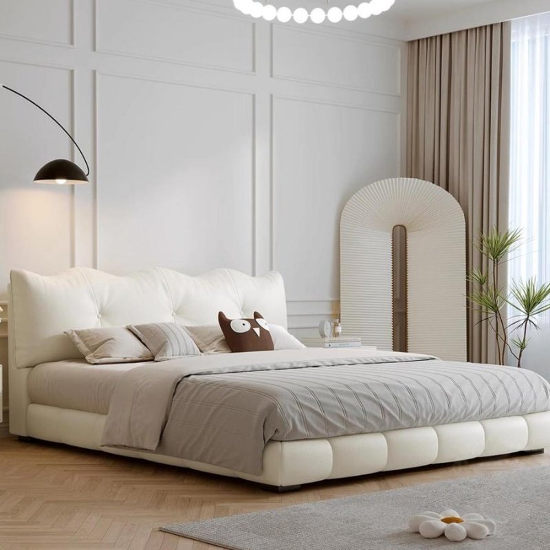 Modern Cream Style King Bed High Quality Upholstered Leather Bed Set Wholesale Nordic Double Soft Wedding Cloud Bed for Home