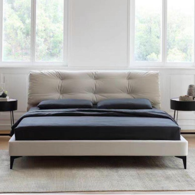 Modern Luxury Queen Double Bed with Genuine Leather Upholstery and Storage for Master Bedroom Minimalist Design