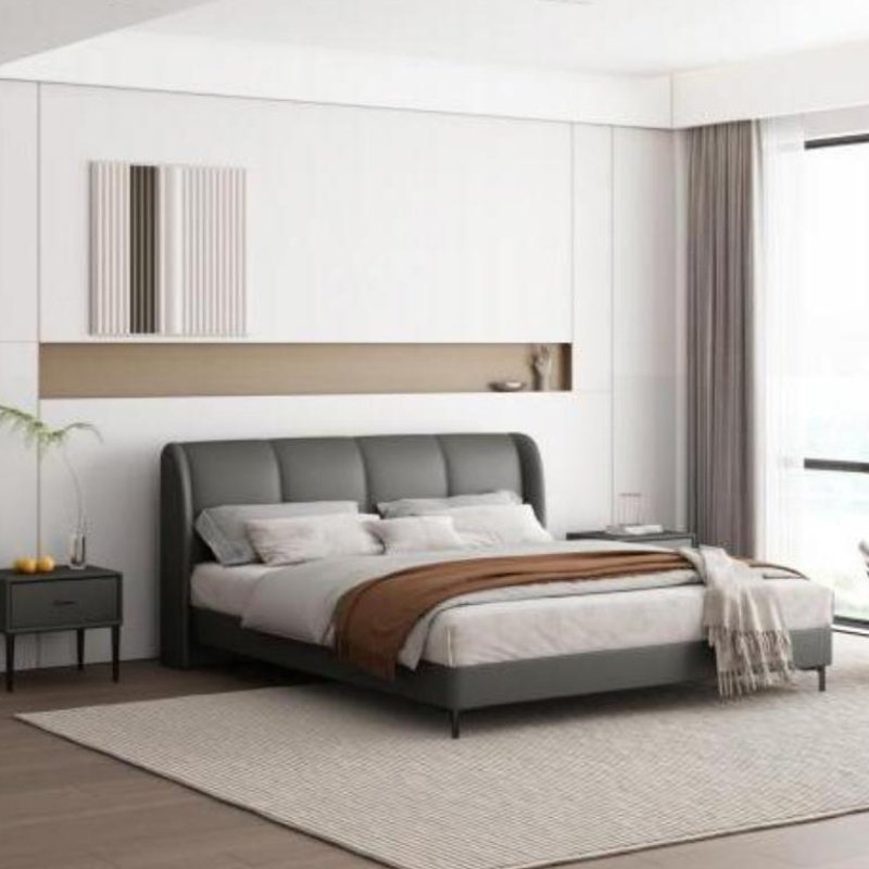 Modern Minimalist Style Upholstered Bed Leather Bed King Size Bedroom Furniture