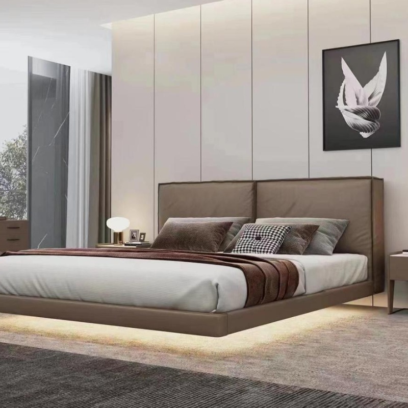 Modern Up-holstered Floating Beds faux Leather King Size Double Queen Bed Frame Bedroom Furniture