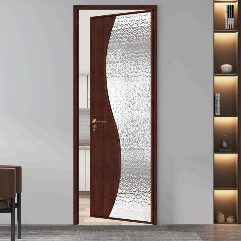 New Chinese style imitation wood grain aluminum alloy sliding door, long rainbow glass door and window furniture factory