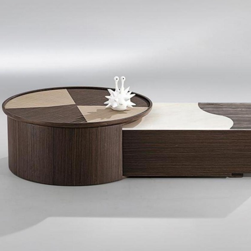 New Wabi-Sabi Retractable Set Coffee Table Vintage Living Room Home Smoked Black Wood Veneer Round Coffee Table