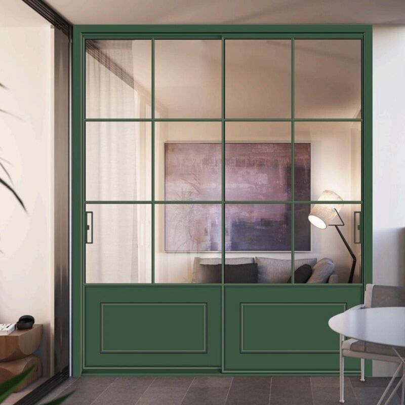 Supplier of high-end custom Green stainless steel sliding doors and ultra-white glass doors and Windows