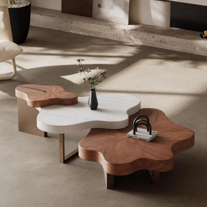 Vintage Cream Style Solid Wood Italian Minimalist Coffee Table Creative Internet Celebrant Irregular Shaped Tea Table Home