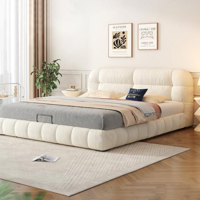 Wholesale Popular Puff Bed Set Furniture Bedroom Designer Cream White Fabric Bed Hot Sale Hotel Modern King Bed Frame for Home