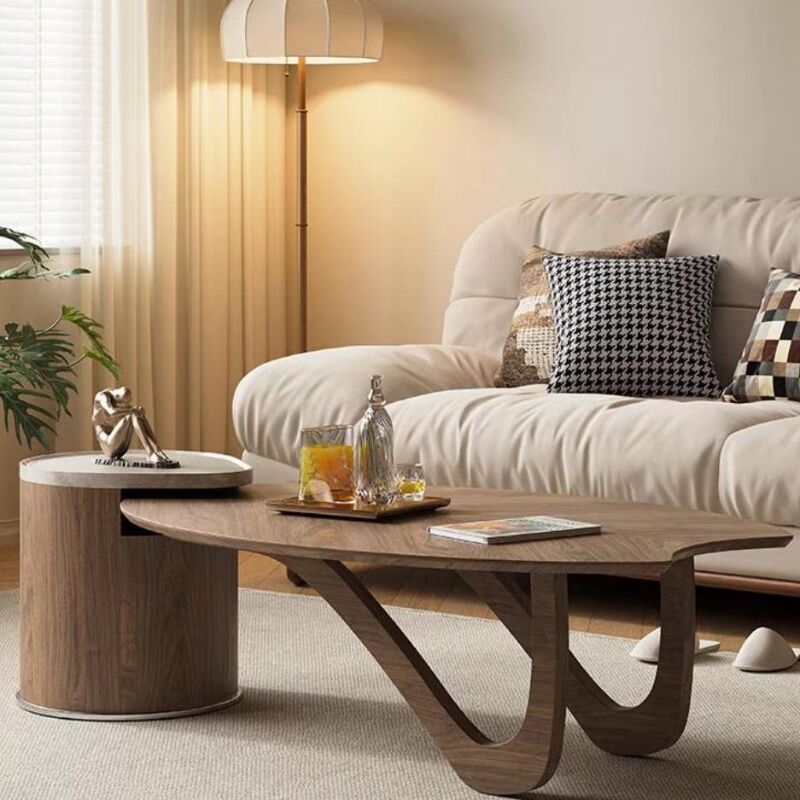 Wholesalers Living Room Decor Nordic Custom Luxury Stainless Steel Base Wood Top Tea Table Wooden Coffee Table